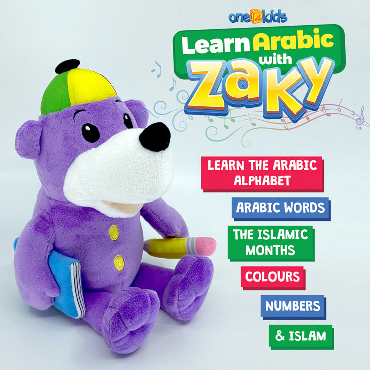 The new Learn Arabic With Zaky Toy is perfect for young children to learn the basics of the Arabic language. Zaky teaches them the Arabic Alphabet, Arabic Colours, Arabic Numbers, Arabic Words, and the Islamic Months while also teaching children about Islam. The Zaky talking toy also features 4 Zaky songs.