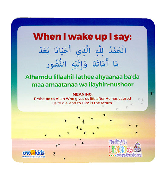 These dua wall prints are perfect for reminding your child (and yourself!) of the various dua's (supplications) Prophet Muhammad (pbuh) recommended we say throughout our day. Hang them up on any wall using adhesive.